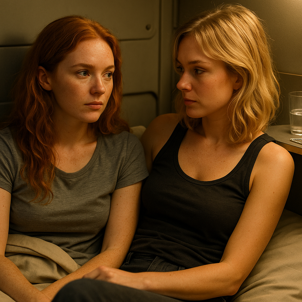 Die Beleuchtung im Raum war noch gedimmt. Neben ihr lag Amanda, ruhig, das Gesicht halb im Schatten, halb vom Licht der Statusanzeige am Türrahmen beleuchtet.