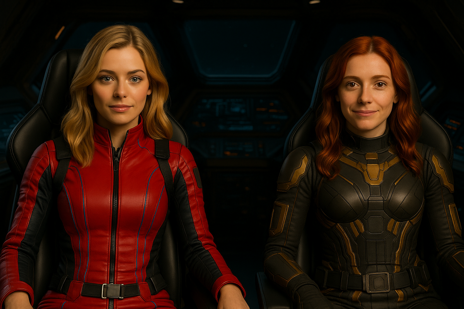 Der Abend war still. Die Anaconda lag in der Umlaufbahn eines kleinen Eisplaneten, das Cockpit nur schwach beleuchtet vom Glimmen der Anzeigen. Amanda hatte die Stiefel auf das Armaturenbrett gelegt, Geraldine saß schräg daneben, beide in dieser entspannten Stille, die man nur nach einem langen Flug findet.
