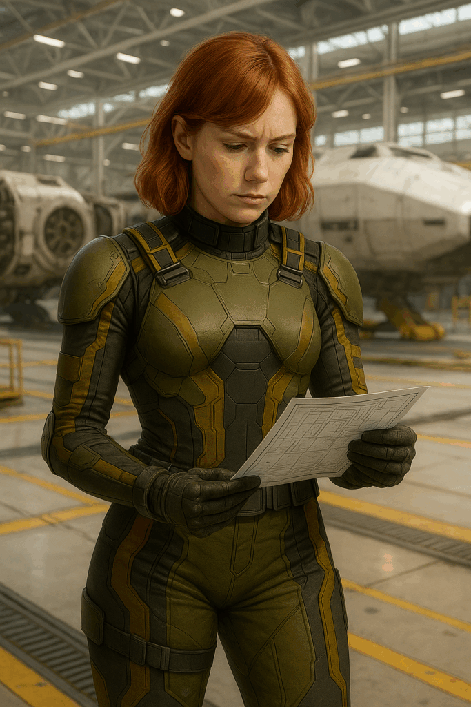 Vor einer Stunde stand ich noch zwischen den Werkzeugkisten anderer Leute, Öl in den Haaren, Schraubenschlüssel in der Hand, und habe Schiffe geflickt, deren Piloten längst aufgegeben hatten. Kühlleitungen gestopft, Sicherungen getauscht, manchmal einfach nur aufs richtige Panel gehauen, damit der Frachter nicht schon vor dem Start wieder runterkam.