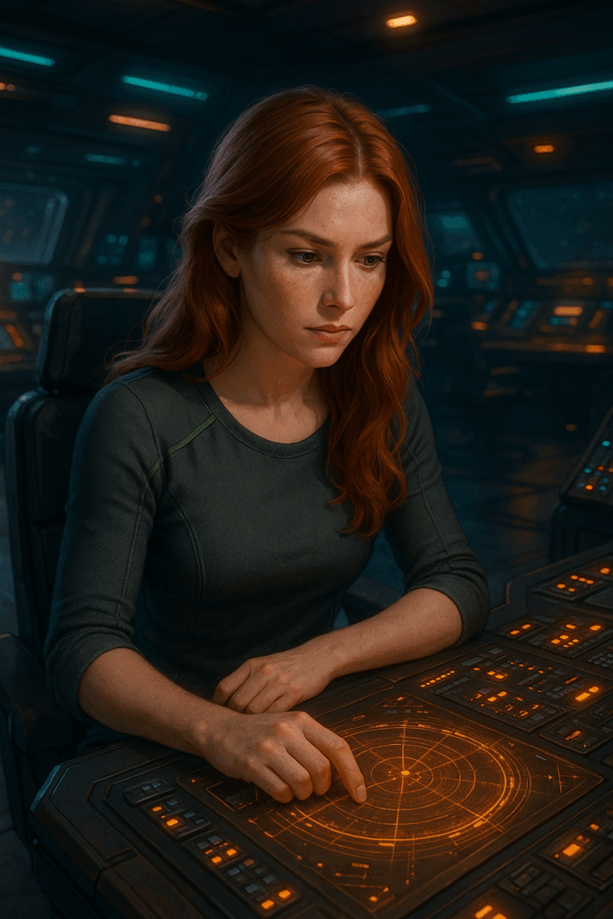 Sie gingen gemeinsam ein paar Schritte, bis sich ihre Wege trennten – Amanda zum Hangar, Geraldine zum Kommandodeck des Carriers. Die schweren Türen schlossen sich zwischen ihnen, und für einen Moment stand Geraldine allein im gedämpften Licht des Ganges, das leise Summen der Lebenserhaltung im Ohr.